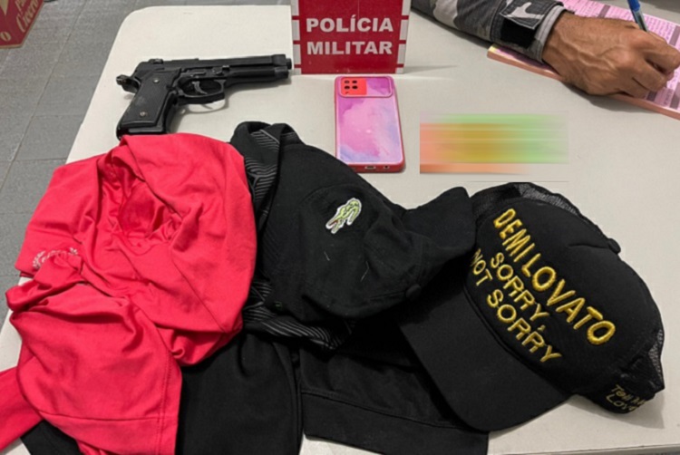 Foram apreendidos: o aparelho celular da vítima, dois cartões de crédito e um simulacro de pistola que possivelmente tenha sido usado no momento do assalto