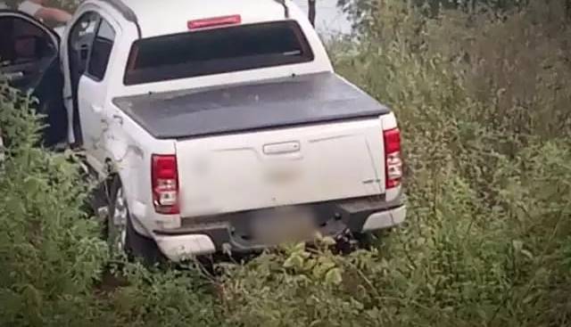 ‘’Os dois indivíduos fugiram com o veículo. Após algumas diligências a Polícia Militar conseguiu localizar o veículo e interceptá-lo próximo à cidade de Conceição. Com a ação da Polícia Militar o motorista colidiu o veículo em uma pedra. Os dois abandonaram o veículo e adentraram no matagal fugindo do cerco policial’’, disse o delegado.