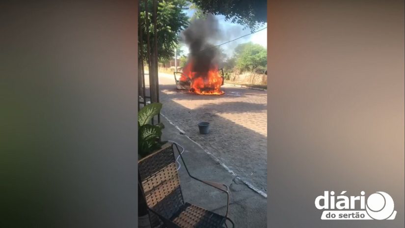 Após a retirada da mulher de dentro do carro, as chamas tomaram conta do veículo – foto: print de tela