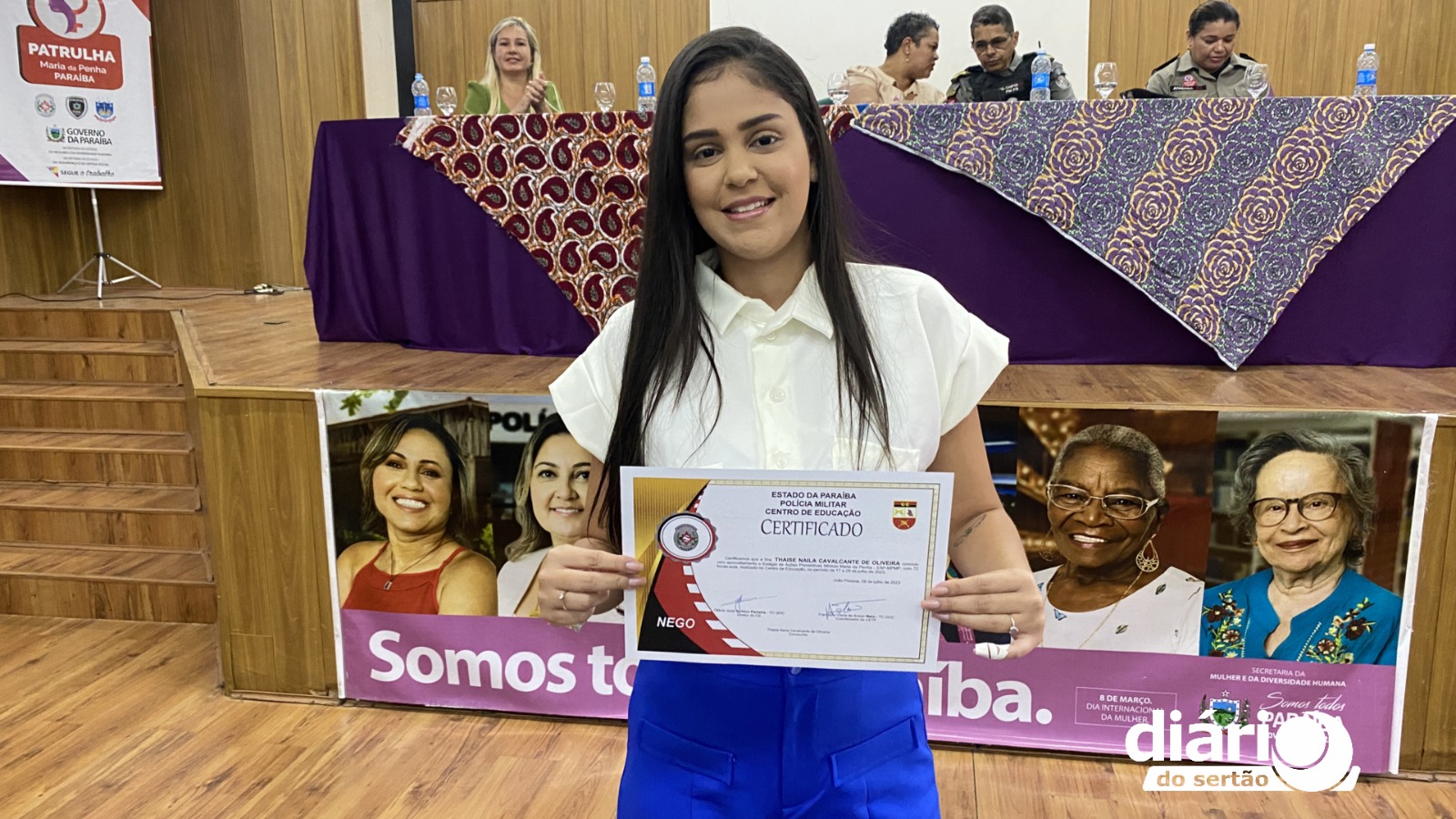 A tenente Adriana Costa, representante do comando da Patrulha Maria da Penha na Paraíba, destaca que o programa fortalece a segurança da mulher sertaneja.