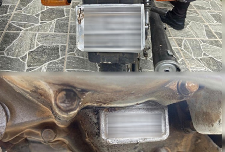 Conforme relato da PM, a numeração gravada no motor era uma, mas, após consulta na base de dados do INFOSEG, constatou-se que a numeração correta do motor deveria ser outra. Além disso, havia indícios de remarcação de, ao menos, dois dígitos no motor. A polícia informou ainda que a placa encontrava-se sem o lacre.