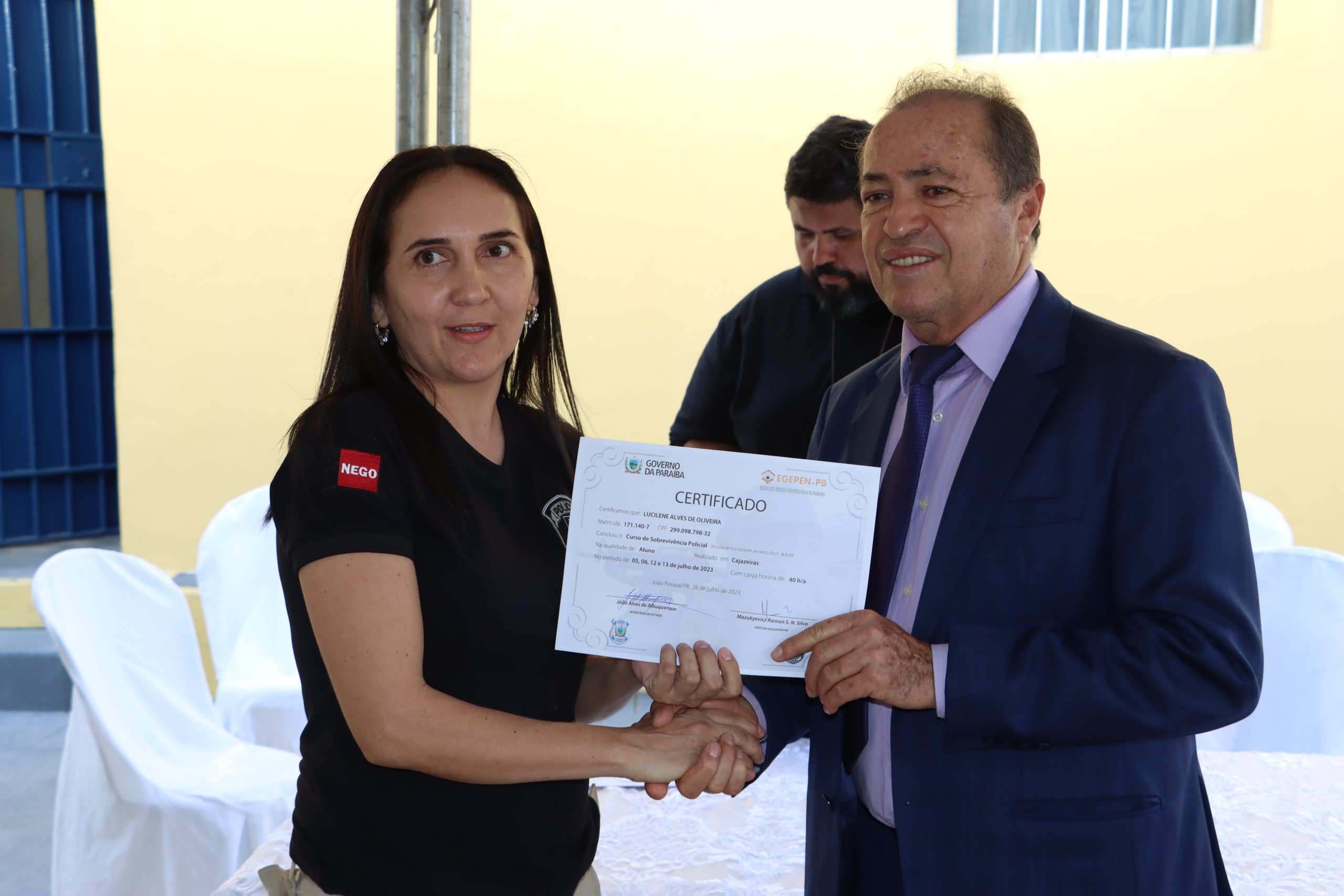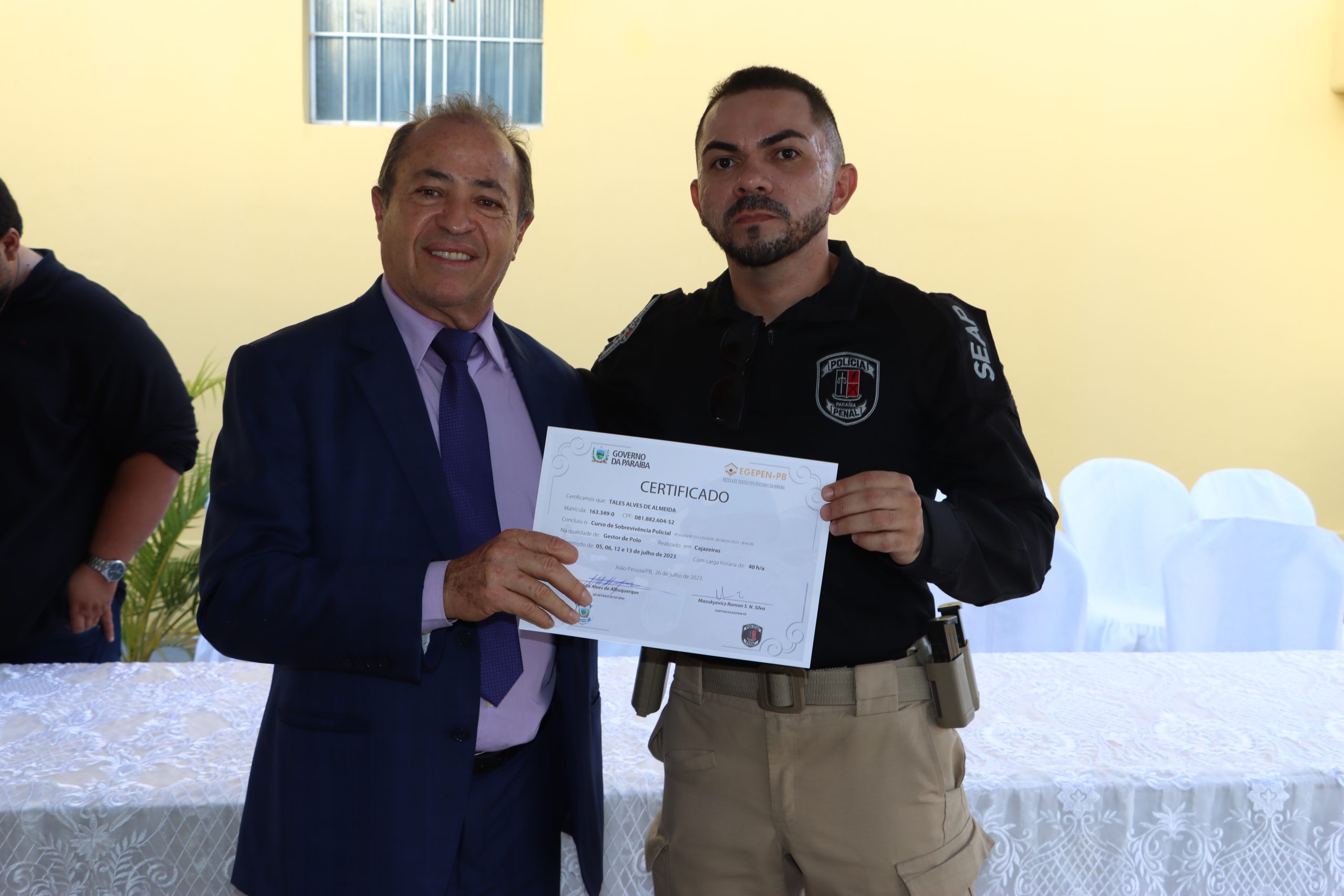 Na ocasião, também aconteceu a entrega dos certificados para policiais penais que participaram de um curso oferecido pela Seap. Thales Almeida, diretor do Presídio Regional de Cajazeiras, enaltece a importância das parcerias para executar a obra.
