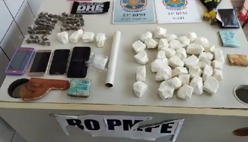 Durante as ações policiais, foram apreendidos dois tabletes de cocaína e maconha.