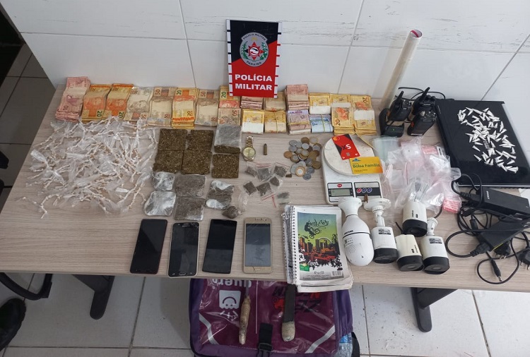 A PM apreendeu dois adolescentes e com eles drogas, munição, dinheiro em espécie, sistema de comunicação e monitoramento. Os menores e todo o material foram conduzidos à delegacia de Polícia Civil para medidas cabíveis.