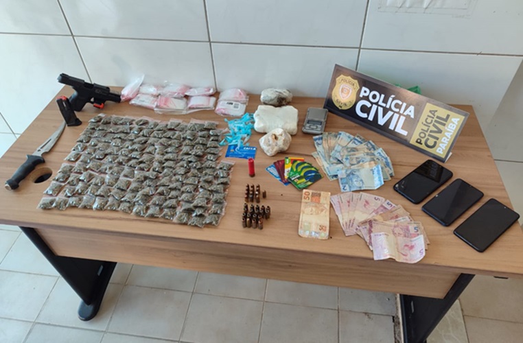 Um homem foi preso em flagrante na manhã desta quarta-feira (29) na cidade de Sousa durante uma operação deflagrada pela Polícia Civil. Além da prisão, os investigadores apreenderam várias drogas ilícitas, como: cocaína, crack e maconha, além de uma arma de fogo, munições de diversos calibres, balança de precisão, dispositivos eletrônicos e dinheiro em espécie.
