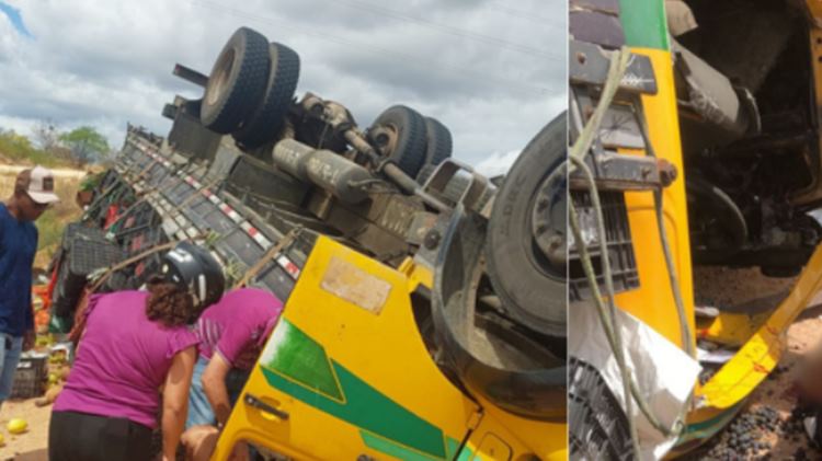 O acidente ocorreu após o motorista perder o controle do veículo, carregado de uvas e maracujá, aproximadamente no KM 287,8 da rodovia.