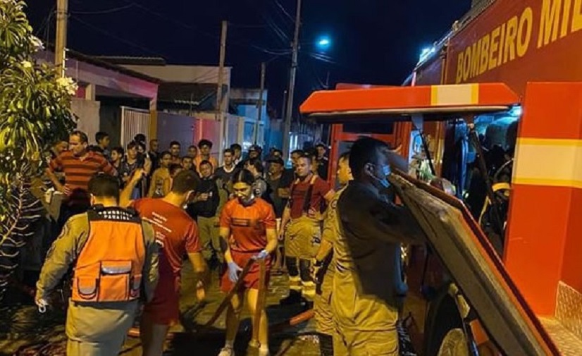 O corpo de Joseneldo Ferreira de Marcena foi retirado por bombeiros de dentro da casa, localizada na Rua José Elias de Figueiredo, no bairro Maria Raquel (Raquel Gadelha).