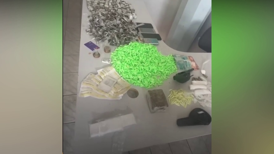 No imóvel, também foram apreendidas embalagens, balança de precisão, aparelhos celulares, notas promissórias, uma quantia em dinheiro e duas aves silvestres que eram mantidas em cativeiro ilegalmente.