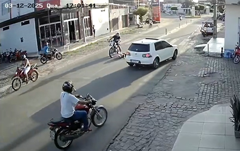 De acordo com as imagens, o homem cai e o motoqueiro para e presta socorro. O SAMU foi acionado e socorreu o idoso para o Hospital Regional de Cajazeiras.