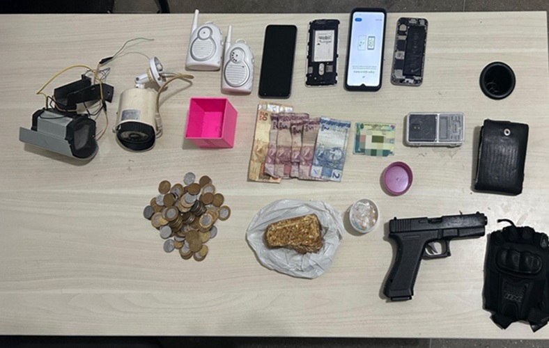 As equipes visualizaram a movimentação suspeita em frente a uma residência e, na abordagem aos suspeitos, foi constatada a entrega de embalagens com drogas ilícitas. Na residência, que servia para o tráfico, foi encontrada uma pedra de crack de aproximadamente 200 gramas, além de dinheiro e diversos materiais relacionados ao tráfico, incluindo rádios comunicadores, balança de precisão, celulares, câmeras de monitoramento e um simulacro de arma de fogo.