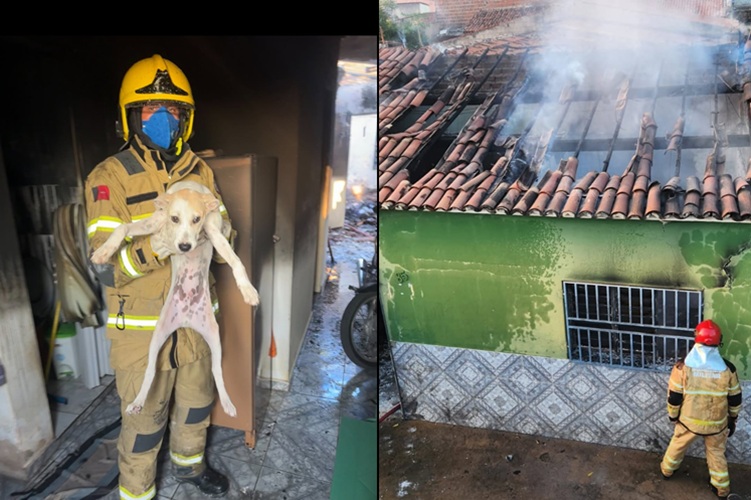 Incêndio atinge residência em Cajazeiras; bombeiros resgatam cachorro e socorrem morador