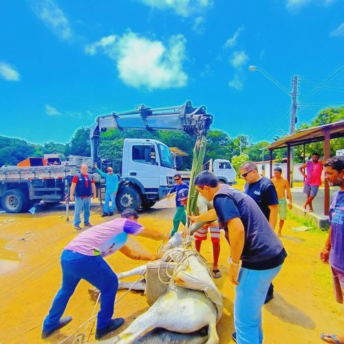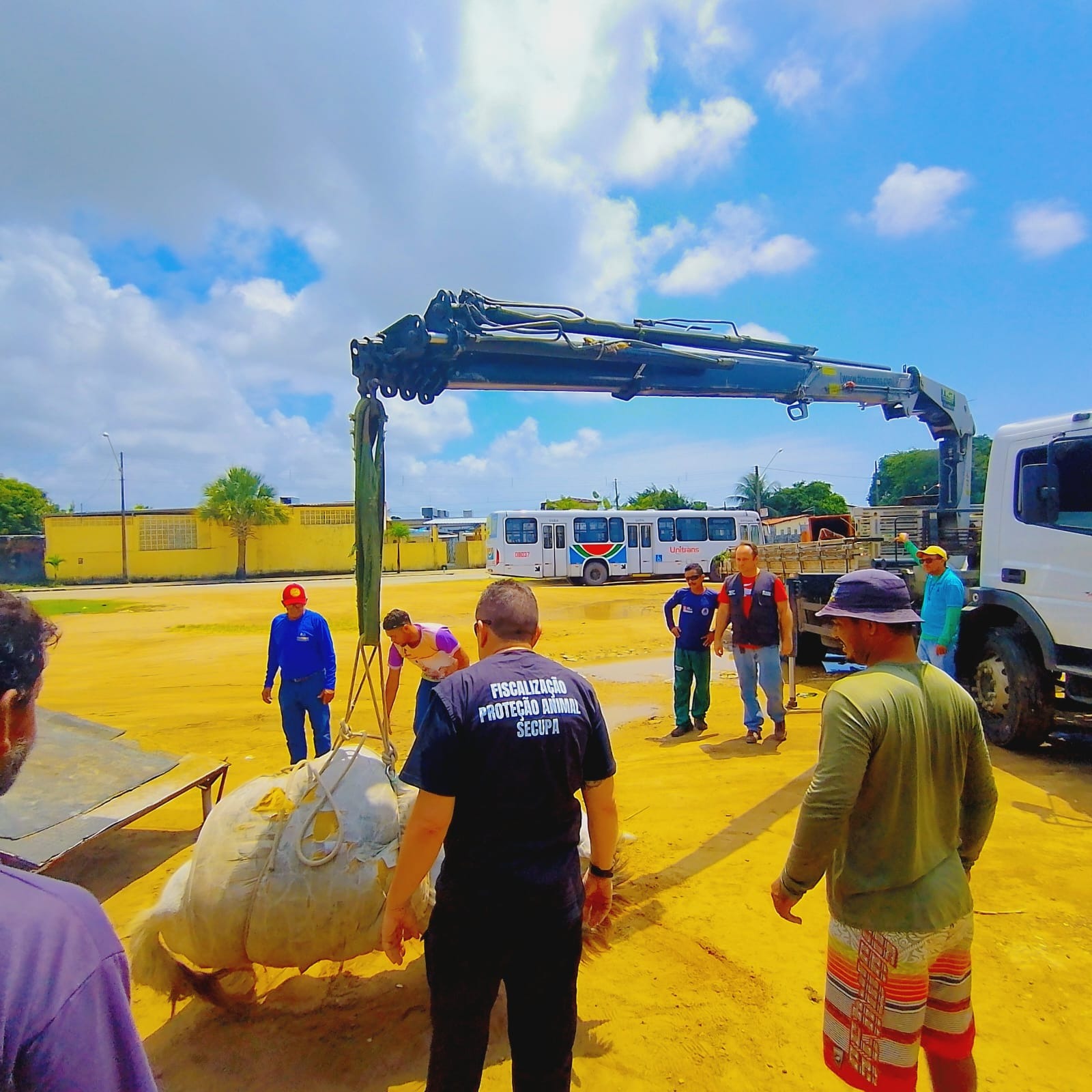 Operação conjunta – O resgate do animal, devido ao seu porte e estado de saúde precário, exigiu uma operação conjunta de vários servidores. Além da equipe de veterinários da Secretaria de Cuidado e Proteção Animal e funcionários do centro de apreensão, a ação contou com o apoio fundamental de um caminhão munk da Secretaria de Desenvolvimento Urbano (Sedurb).