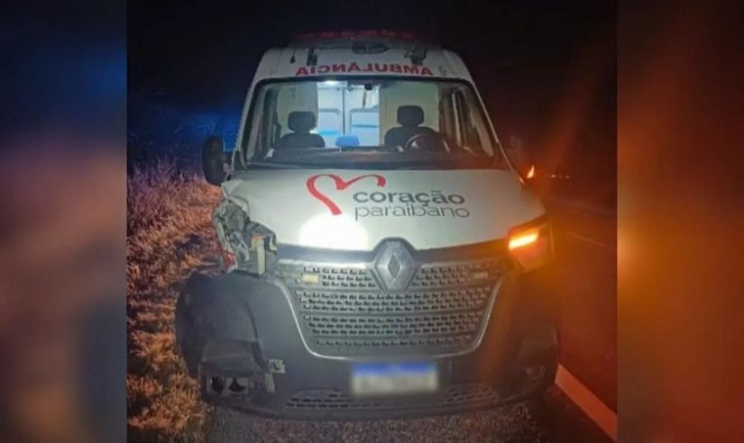 Uma ambulância do programa Coração Paraibano, da Secretaria de Estado da Saúde (SES), colidiu com um animal bovino que estava solto na BR-230, no município de Santa Luzia, Sertão do estado, na madrugada desta quarta-feira (8).