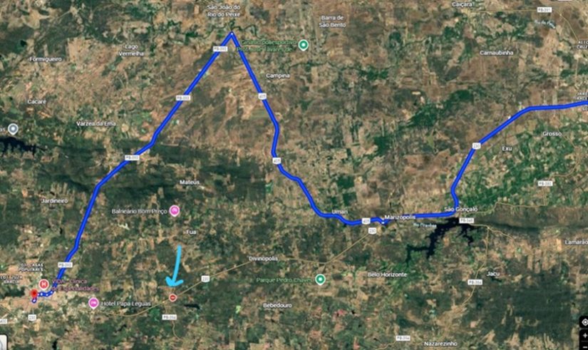 – Depois, retornar à BR-230 na altura do município de Marizópolis.