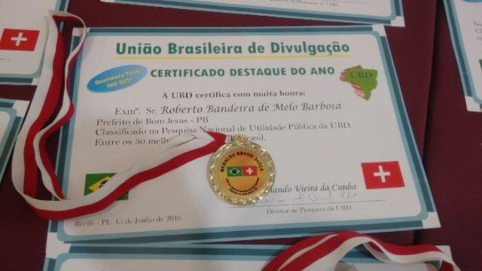 O Prefeito Roberto Bayma do município de Bom Jesus, que foi Prefeito Destaque da Região no ano de 2013, escolhido pela empresa MAOP um empresa de pesquisa de Cajazeiras, foi contemplado com o prêmio JK. Emitido anualmente pela Premium Brasil Congressos e Eventos Nacionais, o prêmio “Juscelino Kubitscheck” premia os 30 melhores prefeitos do Brasil no ano de 2014, e no dia de hoje (15) de junho, recebeu a medalha Brasil Suiça, como prefeito Destaque do ano escolhido entre os 50 melhores do Brasil.