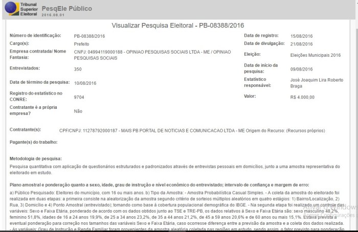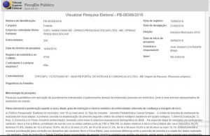 O juiz estipulou multa de R$ 53.205 mil para quem desobedecer a liminar. A pesquisa está registrada no Tribunal Superior Eleitoral (TSE) com o número PB-08388/2016, em 15 de agosto deste ano.