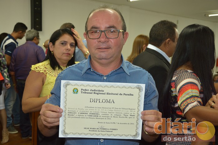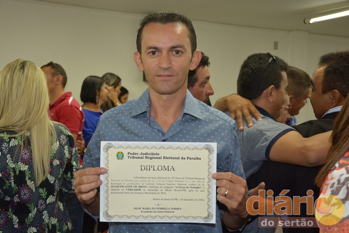 Já o prefeito diplomado de Monte Horebe, Marcos Eron (PMDB), disse que seu governo será marcado pela transparência com o dinheiro público e pelas parcerias com os demais poderes e as entidades representativas da sociedade.