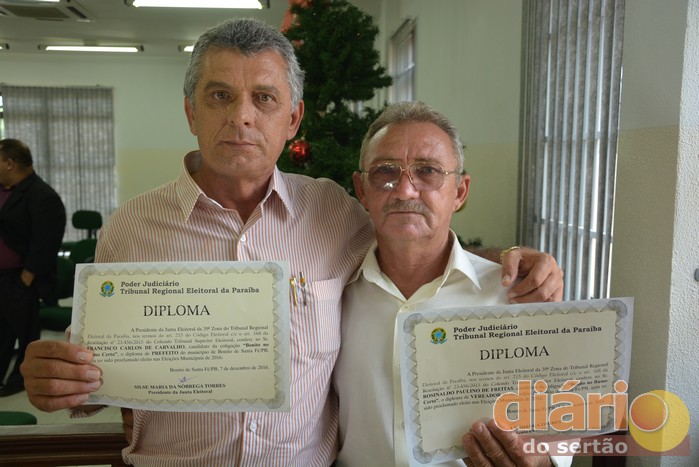 A solenidade de diplomação dos prefeitos, vice-prefeitos e vereadores eleitos em outubro deste ano nos municípios de Bonito de Santa Fé e Monte Horebe, no Alto Sertão paraibano, aconteceu na manhã desta sexta-feira (16) no Tribunal do Júri do Fórum Desembargador Coriolano Dias de Sá, na cidade de Bonito de Santa Fé.