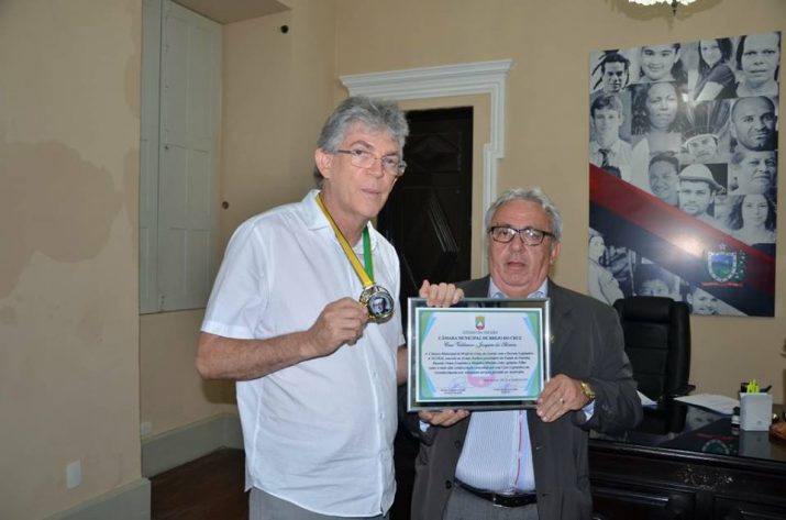 Durante o encontro, que ocorreu no gabinete do governador, Ricardo Coutinho disse estar honrado com a Comenda, que leva o nome do ilustre paraibano João Agripino Filho.