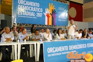 A décima terceira Região Geoadministrativa, sediada pela cidade de Pombal, recebeu no final da tarde desse sábado (8), a segunda audiência pública do Orçamento Democrático Estadual – Ciclo 2017. Na plenária, o governador Ricardo Coutinho fez entrega de equipamentos, assinou convênios com os municípios da região, liberou créditos do Empreender e prestou contas dos investimentos e ouviu as reivindicações da população. O evento contou com a participação de 2 mil pessoas e foi realizado na Escola Arruda Câmara.