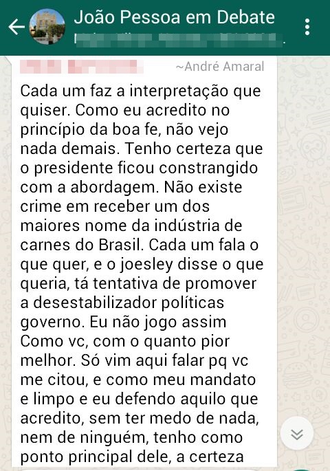 O clima esquentou nesta segunda-feira (22), entre o radialista de Cajazeiras, no Sertão, Jorge Batista e o deputado federal André Amaral em um grupo de Whatsapp da capital paraibana, “João Pessoa em Debate”.