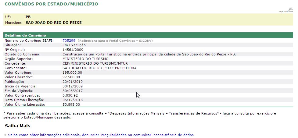 O convênio tem data final até o próximo dia 30 deste mês. A obra não foi concluída, porém já é motivo de críticas da população.