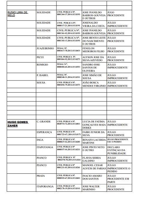 Veja a lista completa dos processos julgados!