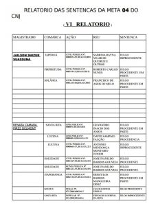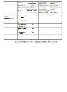 De acordo com os dados do VI Relatório da equipe da Meta 4, das 46 sentenças prolatadas, 16 foram julgadas procedentes e 13 procedentes em parte