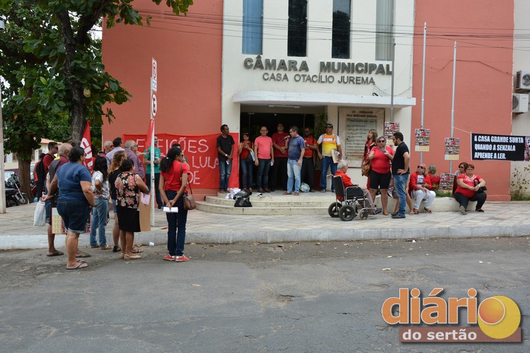 Em Cajazeiras, manifestantes se concentraram em ‘vigília’ em frente à Câmara Municipal. O ato reuniu simpatizantes do PT, integrantes de movimentos sociais e vereadores.