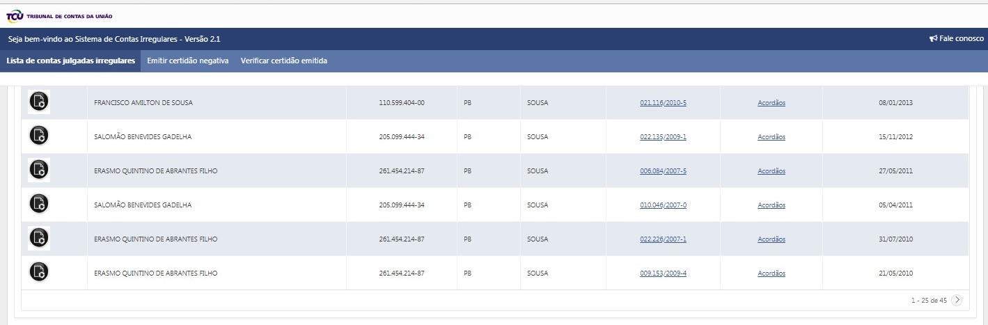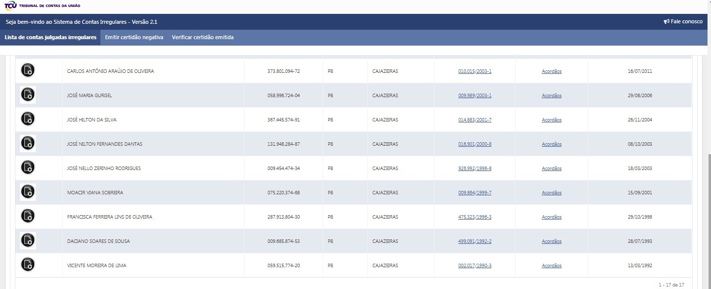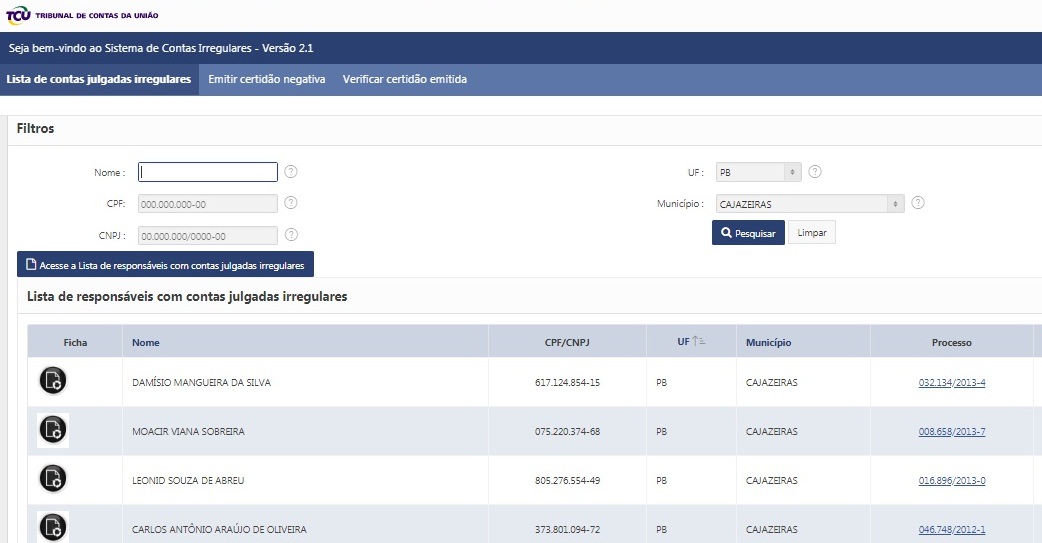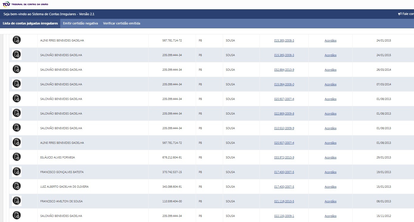 TCU divulga lista gigante dos fichas suja da Paraíba; Cajazeiras aparecem três ex-prefeitos da cidade