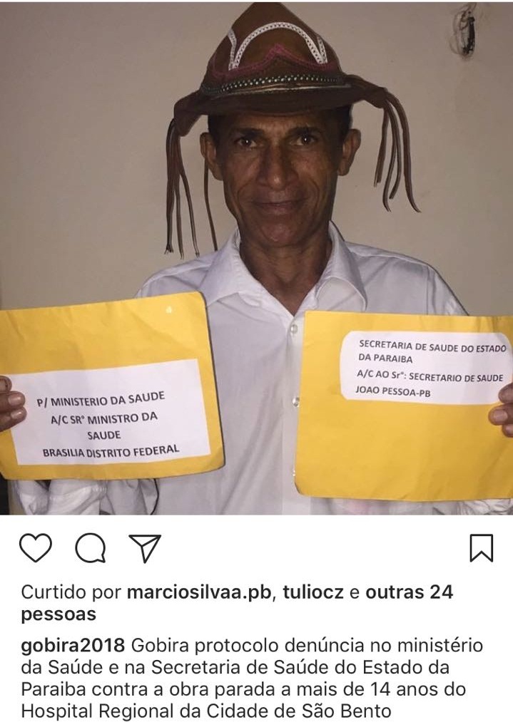 14 ANOS: Gobira denuncia obra inacabada ao Ministério da Saúde e a Secretaria do estado da Paraíba