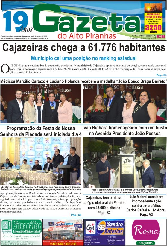 Até o bispo As comemorações alusivas aos 159 anos da devoção a Nossa Senhora da Piedade, Padroeira de Cajazeiras e da Diocese, que serão celebradas entre os dias 05 e 15 de setembro, este ano, até o Bispo, Dom Francisco de Sales, vem se envolvendo e dando a sua contribuição para o brilhantismo, mas especialmente no sentido de resgatar a grandiosidade como era comemorada no passado.