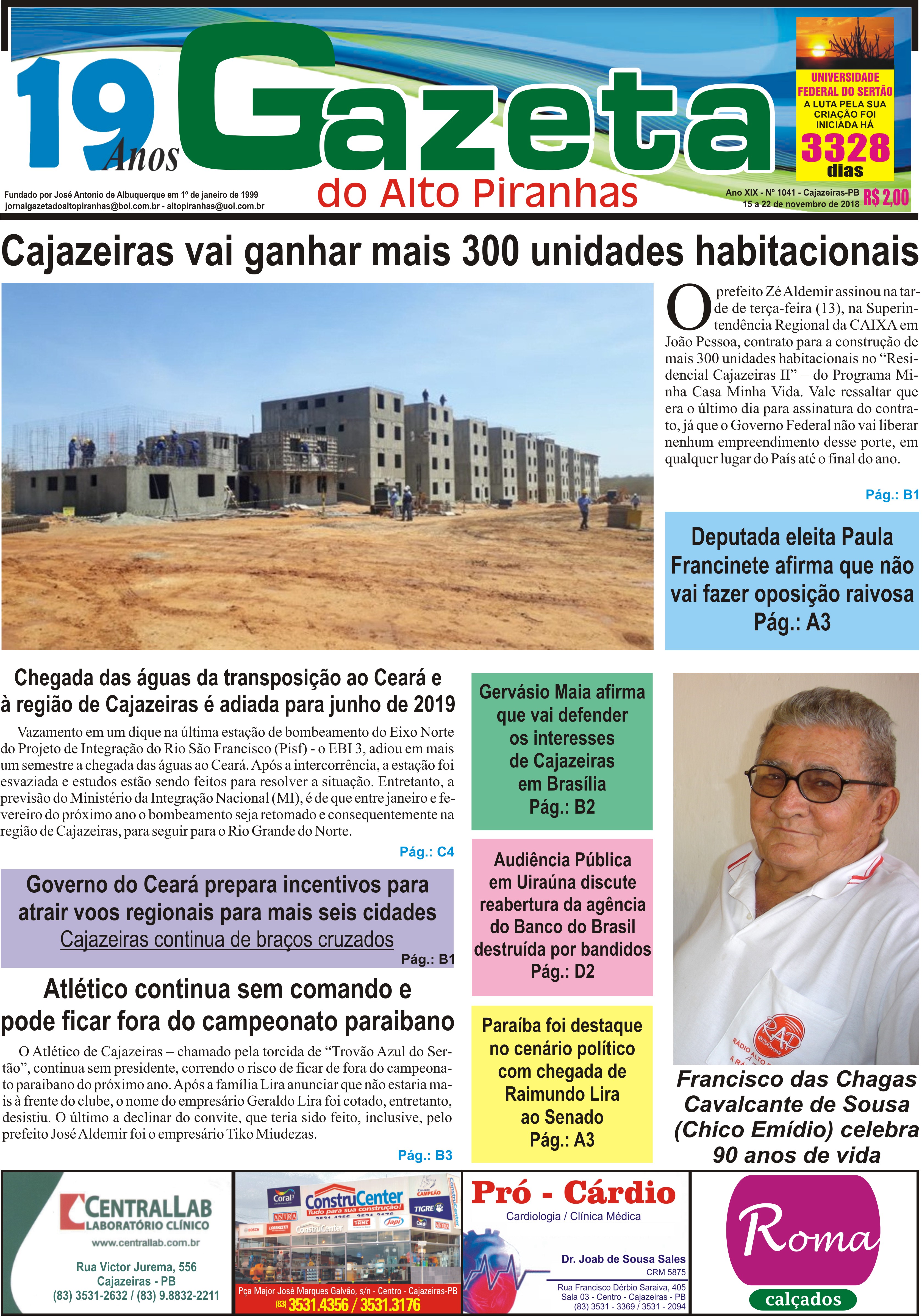 Para assinar o Jornal Gazeta do Alto Piranhas ligue: (83) 3531-1535