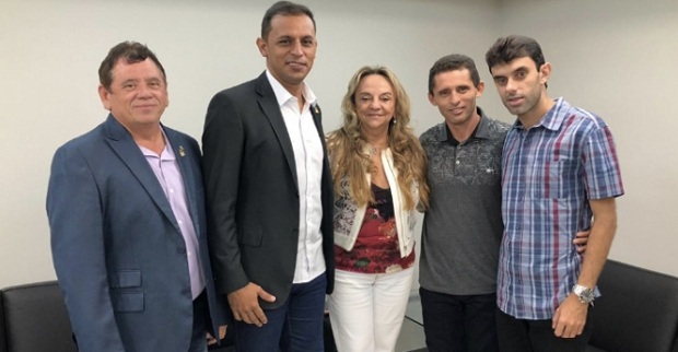 A deputada estadual Paula Francinete (PP) recebeu, na manhã desta quinta-feira (21), a visita de quatro vereadores da cidade de Cajazeiras: Eriberto Maciel (Eriberto da Cegepa – PP), Alisson Lira (Neguin do Modrian – PSD), Eudomar Filho (PTC) e Neto Damacena ( Neto da Vila Nova – PPL).