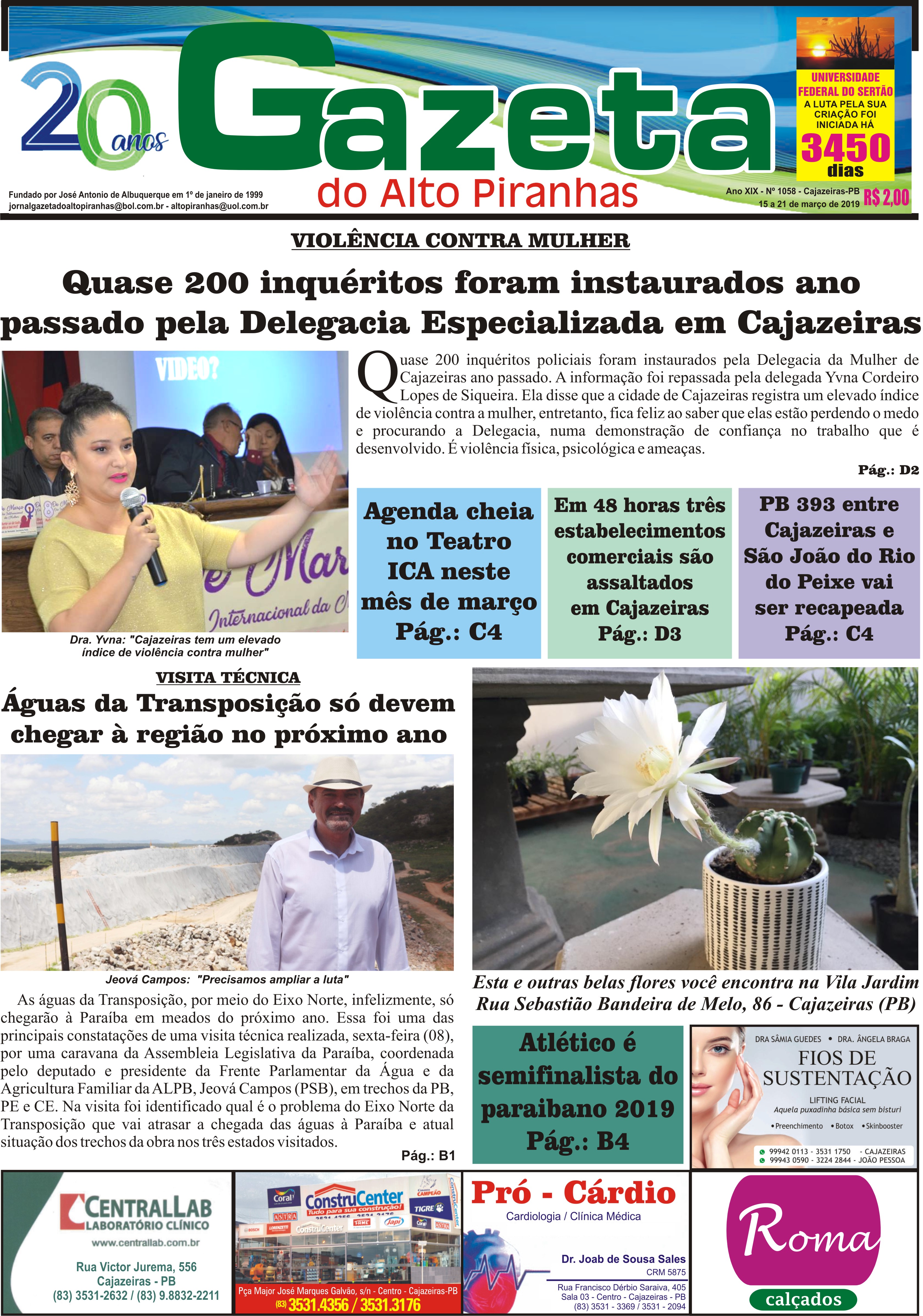 Para assinar o Jornal Gazeta do Alto Piranhas ligue: (83) 3531-1535