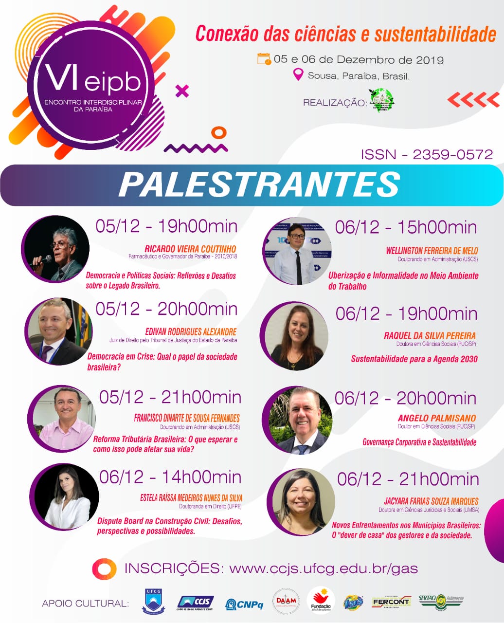 O ex-governador Ricardo Coutinho (PSB) estará na cidade de Sousa, Sertão da Paraíba nessa quinta-feira (04), onde proferirá uma palestra no 6º Encontro Interdisciplinar da Paraíba (6º EIPB), organizado pelo Grupo de Pesquisa Gestão Ambiental no Semiárido (GAS), da Universidade Federal de Campina Grande.