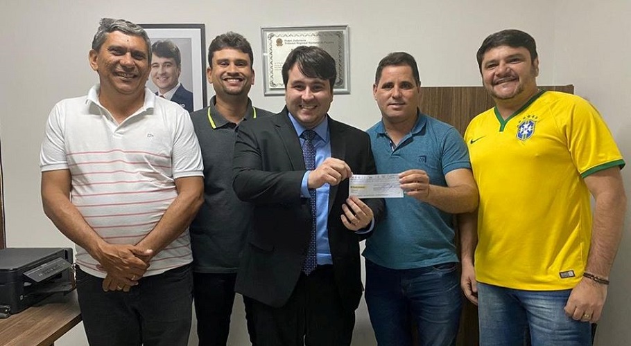 A entrega do cheque nas mãos do prefeito Daniel Galdino (PSD) foi feita pelo presidente da Câmara, José Luiz (Neguinho Marinheiro, também do PSD).