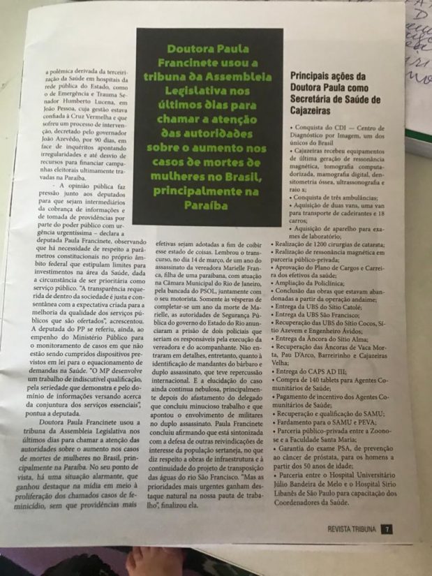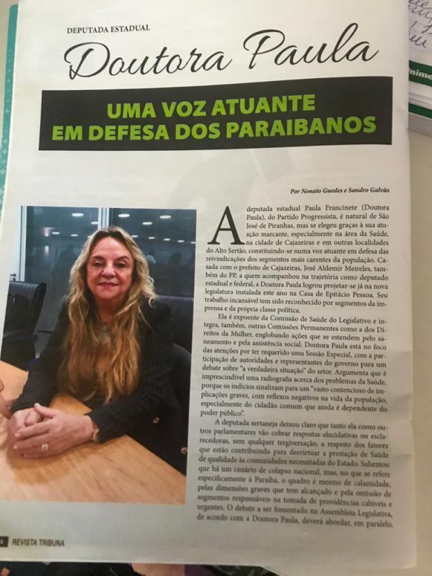 O mandato de Doutora Paula foi destaque na revista Tribuna, como você pode ver nas imagens abaixo: