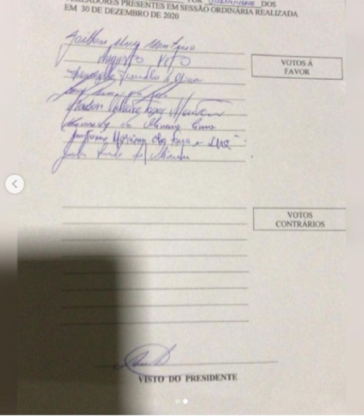 Confira as fotos do Projeto de Lei e o documento com as assinaturas dos parlamentares: