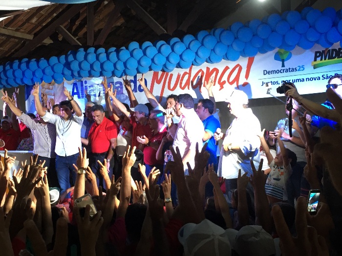 O encontro marcou a celebração de uma coligação entre o PMDB e o Democratas, partidos que estavam separados na cidade há mais de 50 anos.
