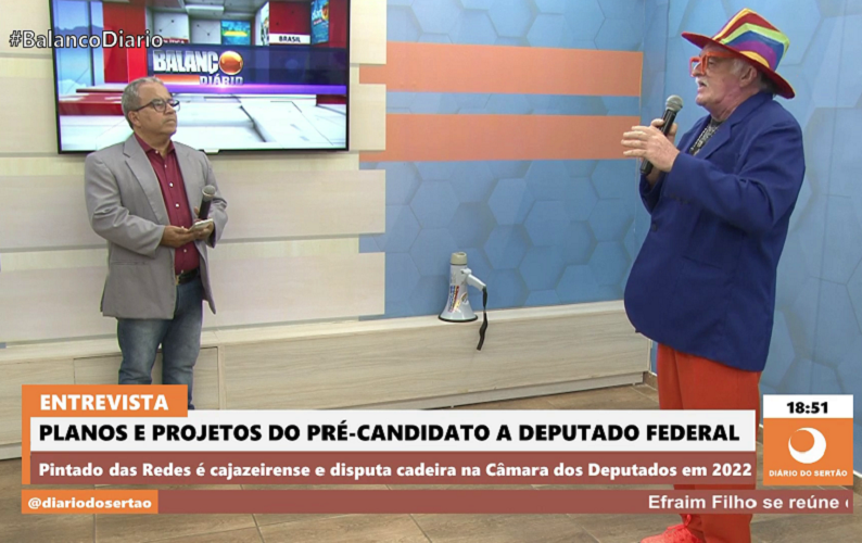 Joselito Oliveira Rolim, o popular Pintado das Redes, uma figura folclórica de Cajazeiras e pré-candidato a deputado federal, disse em participação no programa Balanço Diário da TV Diário do Sertão, que caso seja eleito nas eleições do próximo ano, vai colocar um Projeto de Lei (PL) para que fique mais severo a pena para homens que praticam violência doméstica.