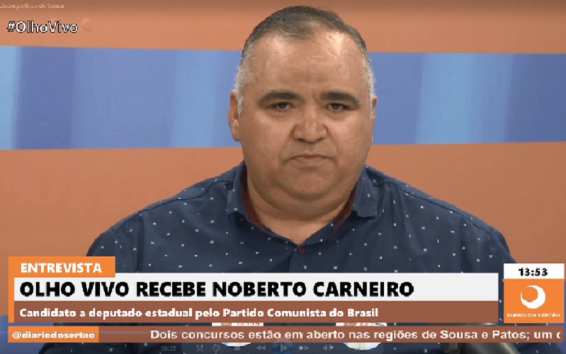 O candidato a deputado estadual pelo Partido Comunista do Brasil (PC do B), Noberto Carneiro, do município de Sousa, concedeu uma entrevista ao programa Olho Vivo da TV Diário do Sertão na última segunda-feira (26), e na oportunidade ele criticou a classe política da Cidade Sorriso.