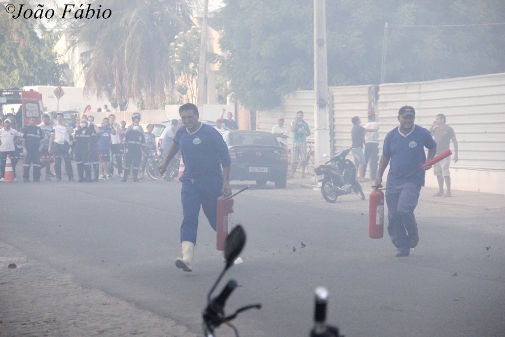 Com baldes d’água, os funcionários da empresa também tentaram apagar o fogo, mas não conseguiram