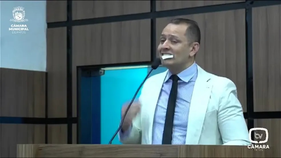 “Vou comer a Lei Orgânica do município de Patos porque não serve de nada isso aqui. Regimento Interno e Lei Orgânica não servem de nada aqui. É melhor comer mesmo, pelo menos está servindo para alguma coisa, porque se não está servindo para ser seguida, é triste um negócio desse”, falou o vereador enquanto rasga e mastiga papel.