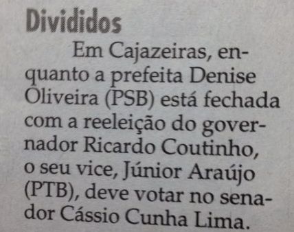 Segundo o jornalista, na cidade de Cajazeiras, o grupo da situação, que é liderado pela prefeita Denise Albuquerque (PSB) e o secretário de Estado Carlos Antonio, está dividido.