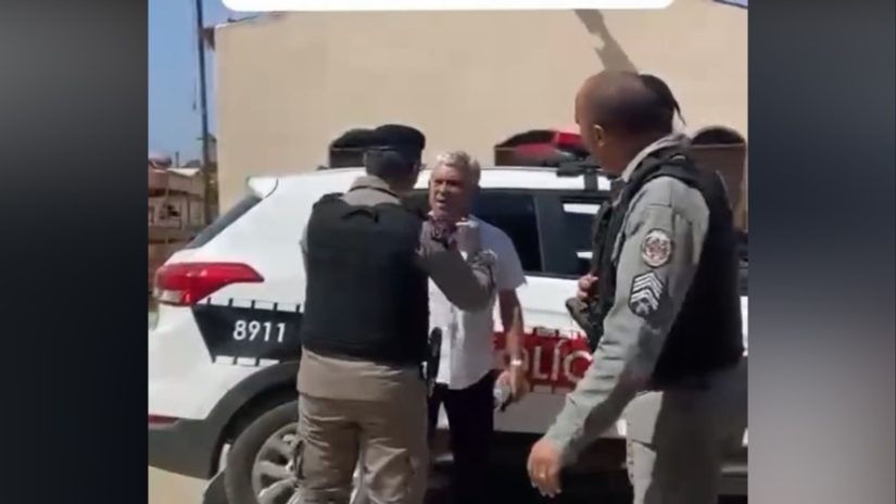 Um vídeo que circula nas redes sociais mostra o prefeito sendo abordado por policiais militares, e resistindo à detenção.