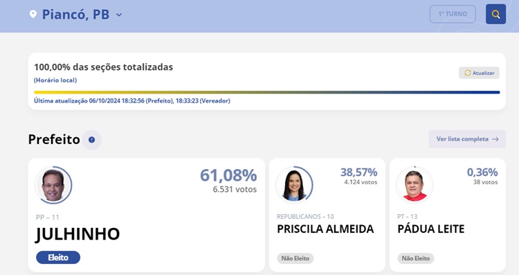 Veja abaixo os resultados de todas as 17 cidades da região do Vale do Piancó:
