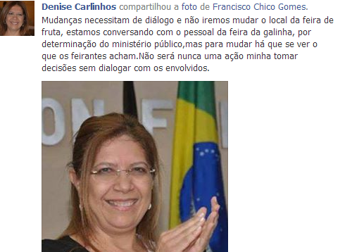 De acordo com a postagem da prefeita, o que existe é uma determinação do Ministério Público quanto ao local da feira da galinha, mas nada foi conversado com a administração.