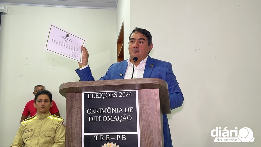 O vice-prefeito Jeferson Vieira também conversou com a reportagem da TV Diário do Sertão. A diplomação aconteceu nessa sexta-feira (13) em Sousa. A Justiça Eleitoral fez a entrega dos diplomas ao prefeito, vice e aos vereadores eleitos e três suplentes de cada coligação