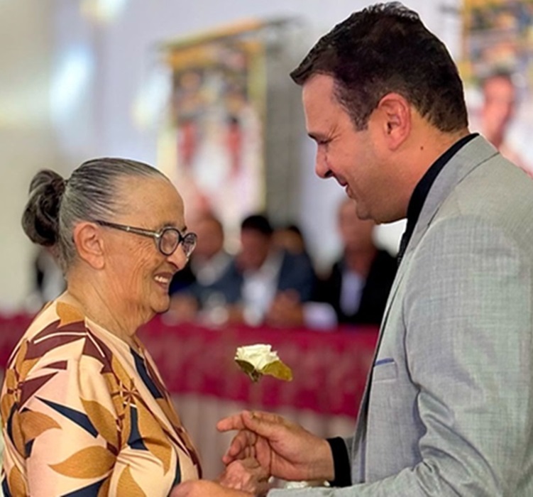 - Prefeito Aldo Andrade ao lado de sua mãe, Dona Maria de Antônio Cazuza, durante solenidade de posse – Foto: divulgação